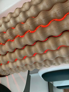 Roller fitness uses specially designed infrared wooden rollers that move rhythmically across the body while you actively engage with the machine. This rolling action supports lymphatic drainage, circulation, and muscle recovery, while infrared light penetrates deep into the tissue.